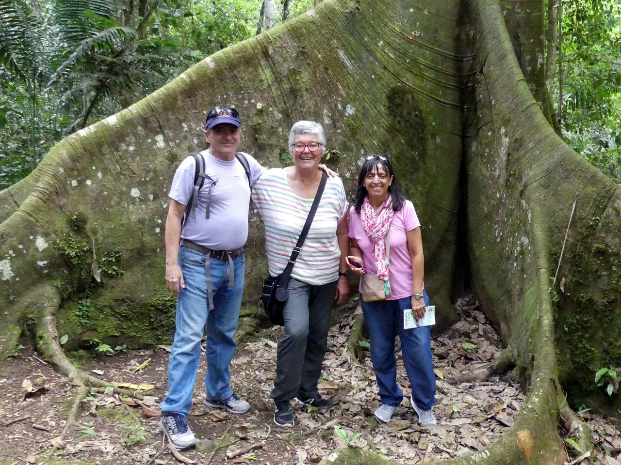Notre première journée sur place est consacrée principalement à la découverte de la flore locale. Je connais certains botanistes (ils se reconnaitront) qui deviendraient fous ici tant la végétation est extraordinaire par son abondance et sa diversité. J’ai lu qu’on peut recenser environ 200 espèces à l’hectare en Amazonie contre une dizaine dans nos forêts. Une promenade en forêt dans un parc botanique nous en donne une première illustration.