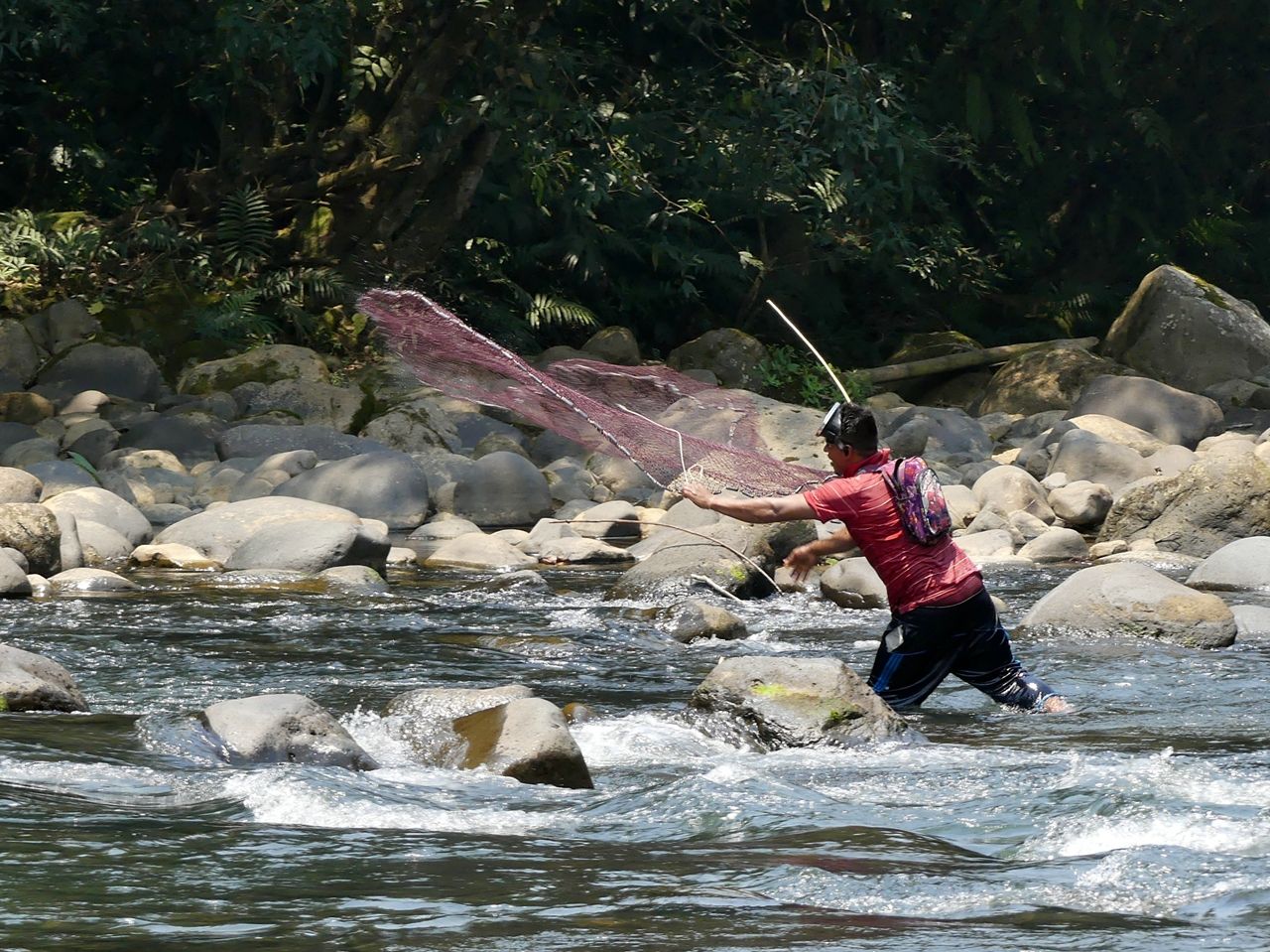 Autour de la ville, nous explorons un peu les pistes pour découvrir les petits villages nichés dans la verdure. Le rio Upano nous offre un peu de sa fraicheur pour un agréable moment en compagnie de quelques familles équatoriennes venues comme nous pique-niquer au bord de l’eau ou pêcher à l’épervier …