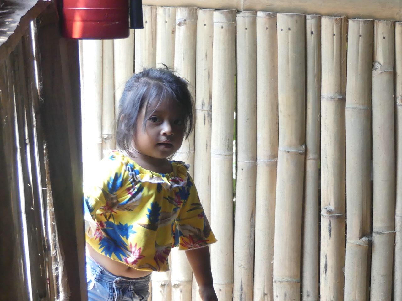 La femme du chef nous reçut - El Olonès, Nikita, Pirita et votre serviteur - et nous indiqua les « baños » de la grande case d’accueil. Des enfants intrigués nous épiaient à travers les fentes des parois de cette hutte communautaire, sorte de salle des fêtes, lieu de cérémonies au centre duquel était posé un simple rondin sur lequel allait s’assoir El Olonès.