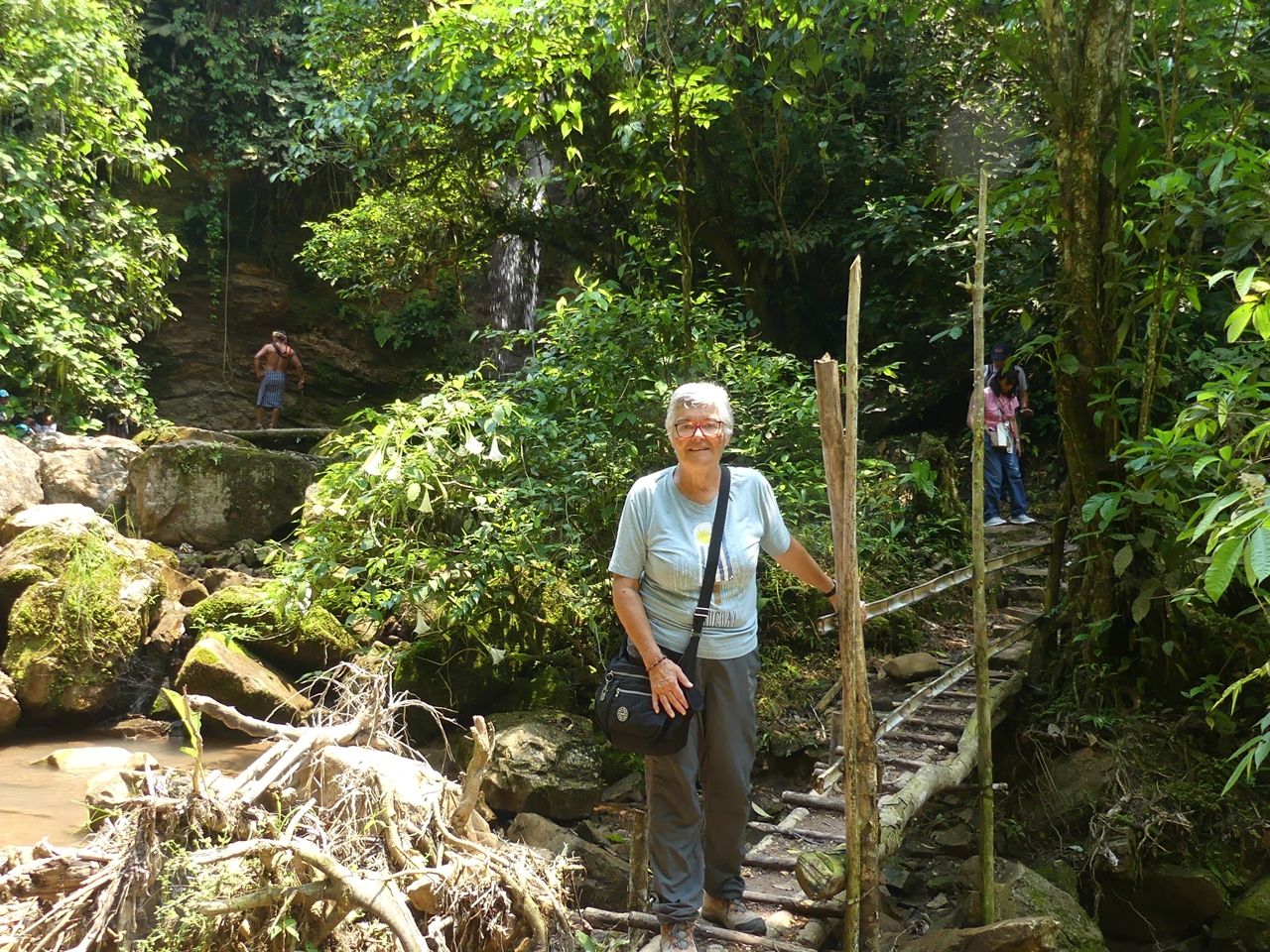 Mais ce matin-là, ils devaient pâlir car Nikita avait paré sa cheville d’un « chapaka », chasse-serpent constitué de graines fixées à une peau de boa qui tinte ainsi à chaque pas. Ces grelots portatifs faisaient un bien joli bruit sur le chemin de la cascade, le long d’un ruisseau qui s’élargissait au fur et à mesure de l’ascension vers les cimes. Les fougères géantes se refermaient sur nos pas.
