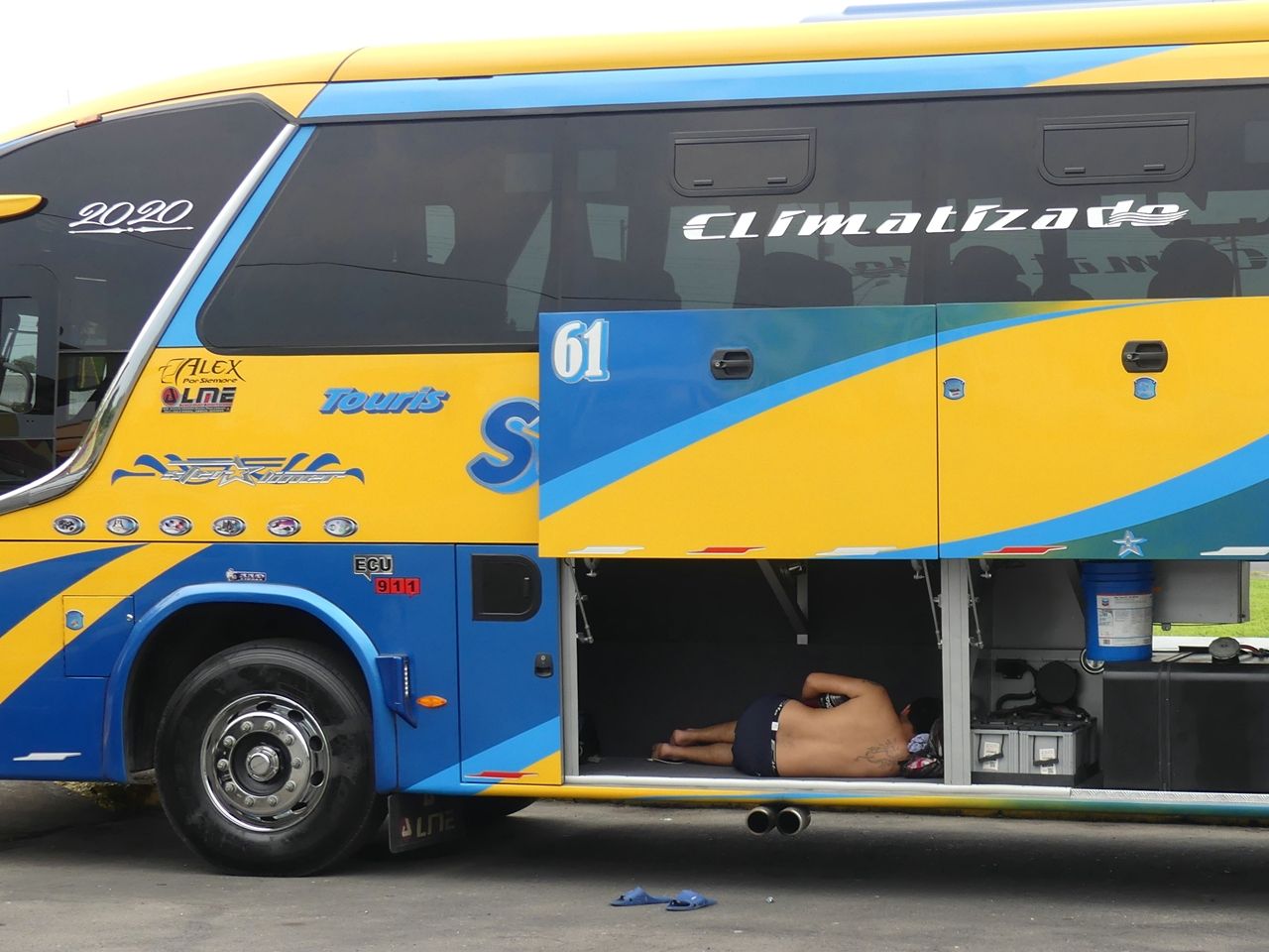 Le soir nous restons avec le chien de la maison, les chats, les oiseaux, les insectes nocturnes … et quelques averses car ici il pleut tous les soirs. Ce n’est pas un hasard si la nature est si généreuse : chaleur et humidité règnent toute l’année. Nous avons eu la chance d’avoir souvent du soleil dans la journée et jamais de pluie.Nous devons remercier Patrick et Esperanza de nous avoir suggéré cet arrêt de quelques jours à Sucùa, petite ville très tranquille ignorée des guides de voyages. Nous y prenons vite nos habitudes et la vie n’y est pas chère pour nous. Pour les repas, quand nous ne les prenons pas dans Trottinette, nous trouvons dans les rues des gargotes où pour 2,5 $ on sert une assiette de poulet et de bananes grillés, semoule de banane verte et salade, plus un verre de coladita, une délicieuse boisson à l’avoine. Un régal, même si le cadre n’est pas forcément raffiné …