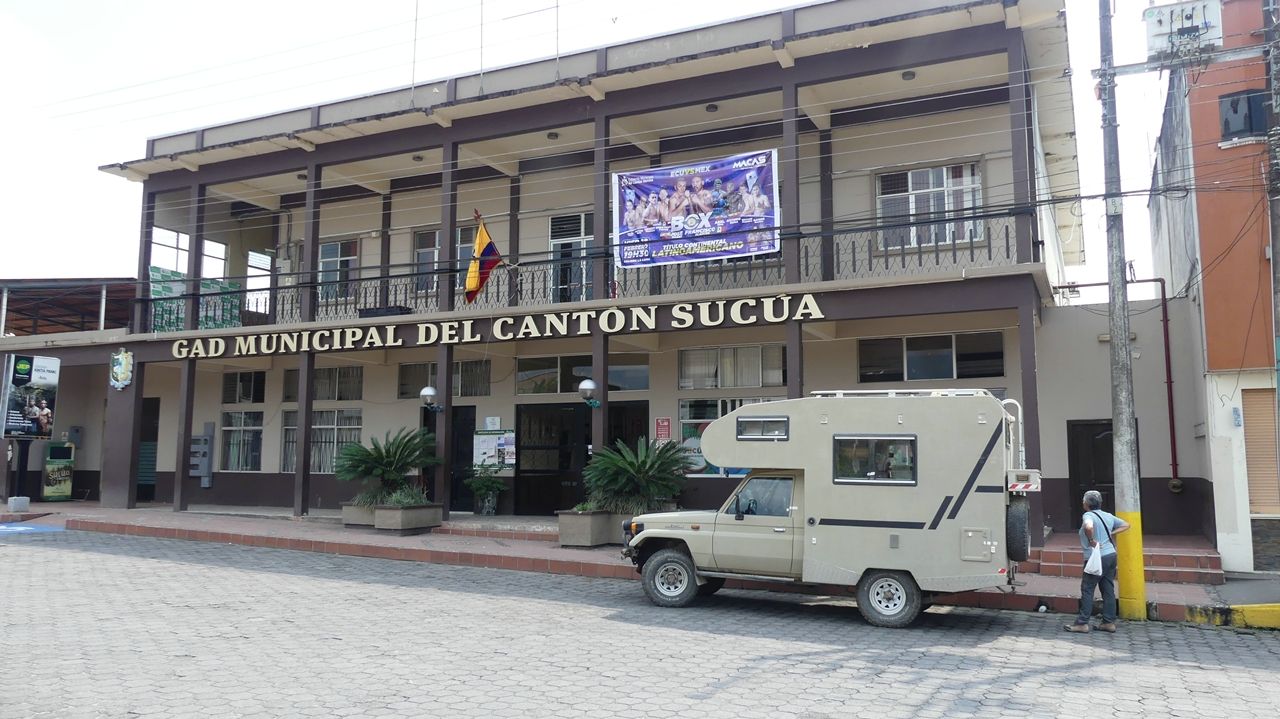 2.000 mètres plus bas, nous voilà dans les fougères géantes, les bananiers et les orchidées. La fraîcheur de Cuenca (8° ce matin) cède la place à la touffeur amazonienne. C’est le soir à Sucùa que nous retrouvons nos cousins, Patrick et Esperanza, qui eux ont voyagé en bus. Nous nous installons dans un petit hôtel à 15 dollars la nuit dans le centre de cette petite ville commerçante aux larges avenues.
